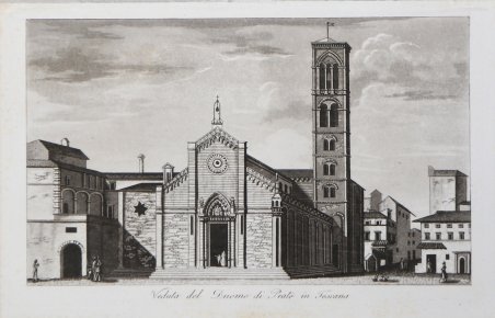 Veduta tratta da Viaggi in Italia per Francesco Gandini, overo descrizione Geografica, Storica, Pittorica, Statistica Postale e Commerciale dell'Italia, edito a Cremona dal 1830 al 1836. Affascinante opera in otto volumi (nove tomi) riguardanti: Quadro generale dell'Italia, Stati di Sardegna, Governo di Milano, Governo di Venezia, Ducati di Parma Piacenza Massa etc., Gran Ducato di Toscana, Stato della Chiesa, Regno di Napoli e Isole dell'Italia. Sono numerose le tavole fuori testo, incise all'acquatinta da Landini, raffiguranti vedute di città italiane. ' Incisione in rame all'acquatinta, in ottimo stato di conservazione. View taken from Viaggi in Italia per Francesco Gandini, overo descrizione Geografica, Storica, Pittorica, Statistica Postale e Commerciale dell'Italia, published in Cremona from 1830 to 1836. Fascinating work in eight volumes (nine tomes) about: General Framework of Italy, States of Sardinia, Government of Milan, Government of Venice, Duchies of Parma Piacenza Massa etc., Grand Duchy of Tuscany, State of the Church, Kingdom of Naples and Islands of Italy. There are numerous plates outside the text, etched in aquatint by Landini, depicting views of Italian cities. ' Aquatint, in excellent condition. Cfr.