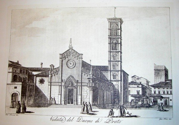 VEDUTA DEL DUOMO DI PRATO. Riproduzione tratta da "Viaggio pittorico della Toscana" di Jacopo e Antonio Terreni.