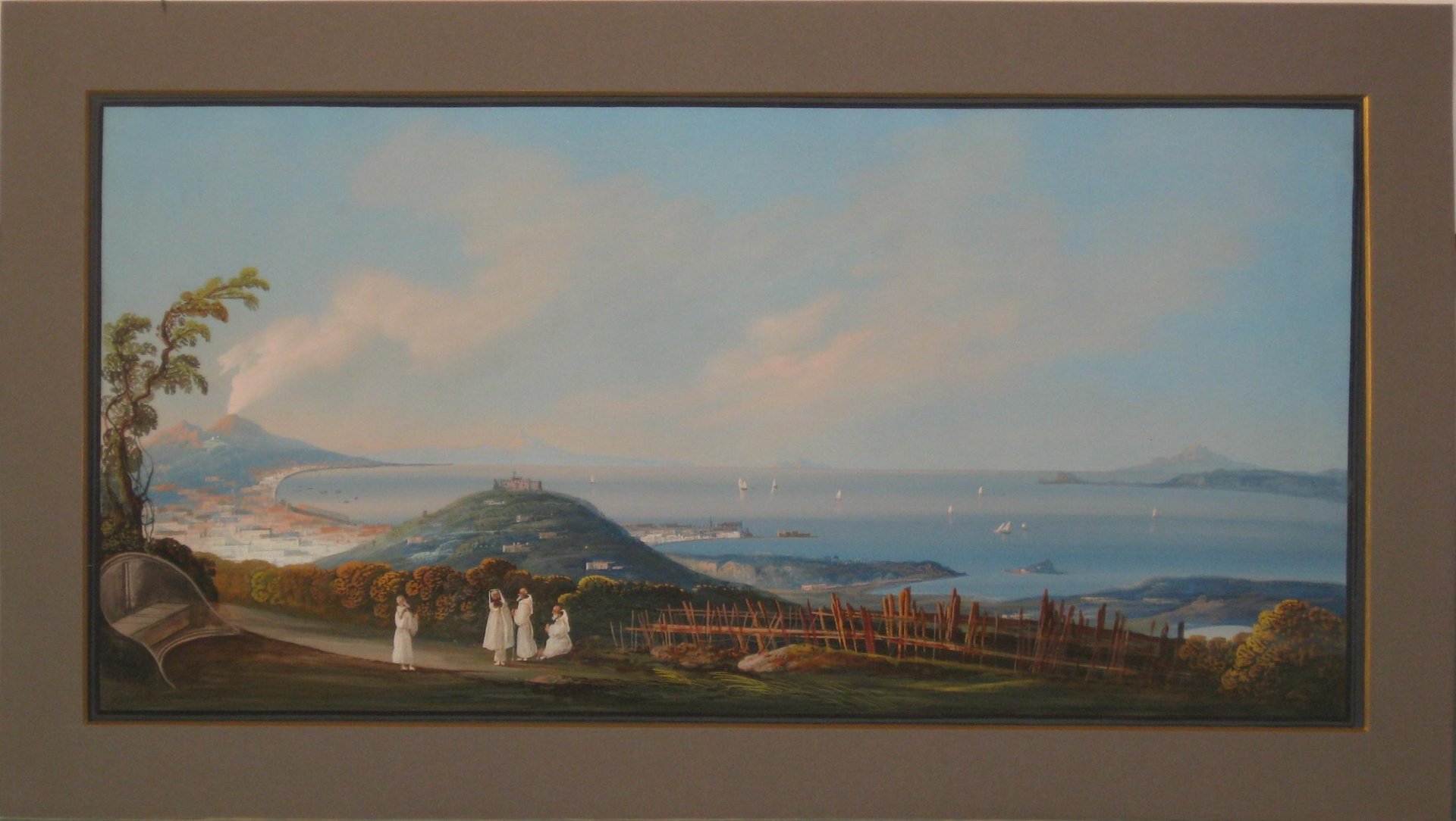 Gouache. Veduta del Golfo di Napoli dai Camaldoli, la collina del Vomero e tutto il seno della città