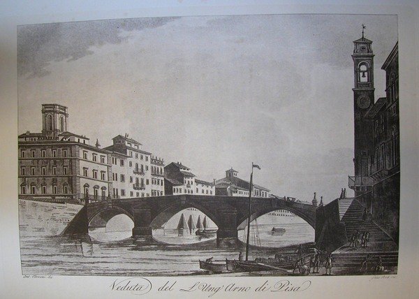 VEDUTA DEL LUNGARNO DI PISA. Riproduzione tratta da "Viaggio pittorico della Toscana" di Jacopo e Antonio Terreni.