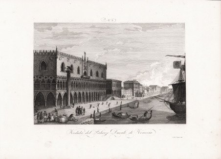 Veduta pubblicata nel noto Atlante illustrativo, ossia Raccolta dei principali monumenti italiani antichi, del Medio evo e moderni, e di alcune vedute pittoriche… di Attilio Zuccagni-Orlandini, edito in 3 tomi nel 1845 a Firenze, per servire di corredo alla Corografia fisica, storica e statistica dell'Italia…, opera in 12 volumi, pubblicati dal 1837 al 1845, corredata - oltre che dall'Atlante illustrativo sopra descritto - anche da un Atlante geografico degli Stati italiani, in due tomi. Attilio Zuccagni Orlandini (1784-1872) nacque a Fiesole con il nome di Giuseppe Orlandini. In seguito all’adozione da parte del facoltoso zio materno Attilio Zuccagni (1754-1807), botanico e georgofilo, assunse il nome di Attilio Zuccagni Orlandini. La sua più importante opera è la relazione geografico-cartografica di tutti gli Stati preunitari italiani, la grandiosa Corografia fisica, storica e statistica dell’Italia e delle sue Isole (Firenze 1835-1845), in dodici volumi per diciannove tomi, con un volume introduttivo sull’intera penisola italiana. L’opera costituì la summa delle centinaia di opere geografiche generali, regionali e locali allora disponibili e presentava, per ogni Stato preunitario, la trattazione fisica, storica, topografica e un inquadramento statistico. Nel 1844-45, la Corografia fu arricchita con cinque volumi di cartografie, vedute e altre illustrazioni di luoghi e monumenti: Atlante geografico degli Stati italiani delineato sopra le migliori e più moderne mappe (due volumi con 144 tavole inclusa la grande carta della penisola in 15 fogli) e Atlante illustrativo ossia raccolta dei principali monumenti italiani antichi, del medio evo e moderni e di alcune vedute pittoriche (tre volumi con 413 illustrazioni, stampate su 269 fogli). Le tavole furono incise, sempre a Firenze, in due apposite officine, da quattro valenti artisti lombardi (Vittorio Angeli, Giacinto Maina, Pietro Manzoni e Giuseppe Pozzi). Soprattutto il primo dei due atlanti rappresenta, ancora oggi, una pietra miliare nella storia della cartografia e dell’iconografia geografica italiana. Fu veramente ‘un’ardua impresa’, dal momento che spesso mancavano ancora (come, ad esempio, per il Ducato di Lucca e lo Stato Pontificio) prodotti cartografici compiutamente geometrici. I due prodotti furono presentati ai Georgofili nel 1843 e nel 1844, insieme alla mappa della Repubblica di San Marino. L’opera si rivelò oltremodo costosa e non ottenne il successo commerciale sperato, ma servì da base per tante altre iniziative editoriali successive che vi attinsero, talora senza neppure rispettarne i diritti d’autore. ' Incisione su rame all'acquaforte, in ottimo stato di conservazione. ' Bibliografia: Anna Guarducci - Dizionario Biografico degli Italiani - Volume 100 (2020). View published in the famous Atlante illustrativo, ossia Raccolta dei principali monumenti italiani antichi, del Medio evo e moderni, e di alcune vedute pittoriche. di Attilio Zuccagni-Orlandini, published in 3 volumes in Florence, 1845, to accompany the Corografia fisica, storica e statistica dell'Italia., a work in 12 volumes, published from 1837 to 1845, accompanied - in addition to the Atlante illustrativo described above - also by a Atlante geografico degli Stati italiani, in two volumes. Attilio Zuccagni Orlandini (1784-1872) was born in Fiesole under the name of Giuseppe Orlandini. Following adoption by his wealthy maternal uncle Attilio Zuccagni (1754-1807), a botanist and georgofile, he took the name Attilio Zuccagni Orlandini. His most important work is the geographic-cartographic report of all the pre-unification Italian states, the great Corografia fisica, storica e statistica dell'Italia e delle sue Isole (Florence 1835-1845), in twelve volumes for nineteen tomes, with an introductory volume on the entire Italian peninsula. The work constituted the sum of hundreds of general, regional and local geographic works then available and presented, for each pre-unification state, the physical, historical, topographical and statistical framework. In 1844-45, the Corografia was enriched with five volumes of maps, views and other illustrations of places and monuments: Atlante geografico degli Stati italiani delineato sopra le migliori e più moderne mappe (two volumes with 144 plates including the large map of the peninsula in 15 sheets) and Atlante illustrativo ossia raccolta dei principali monumenti italiani antichi, del medio evo e moderni e di alcune vedute pittoriche (three volumes with 413 illustrations, printed on 269 sheets). The plates were engraved, again in Florence, in two special workshops, by four talented Lombard artists (Vittorio Angeli, Giacinto Maina, Pietro Manzoni and Giuseppe Pozzi). Especially the first of the two atlases represents, even today, a milestone in the history of cartography and Italian geographic iconography. It was truly 'an arduous undertaking', since cartographic products were often still lacking (as, for example, for the Duchy of Lucca and the Papal States) fully geometric. The two products were presented to the Georgofili in 1843 and 1844, along with the map of the Republic of San Marino. The work proved to be very expensive and did not achieve the commercial success hoped for, but served as a basis for many other subsequent publishing initiatives that drew on it, sometimes without even respecting the copyright. ' Etching, in excellent condition. ' Literature: Anna Guarducci - Dizionario Biografico degli Italiani - Volume 100 (2020). Cfr.