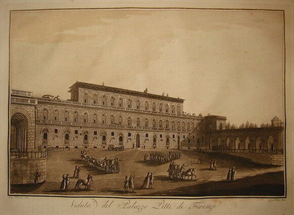 Acquatinta originale (cm. 36,5x26,5 più ampi margini bianchi) dal ‘Viaggio pittorico della Toscana’ dell’abate Francesco Fontani. Esemplare in ottimo stato di conservazione.