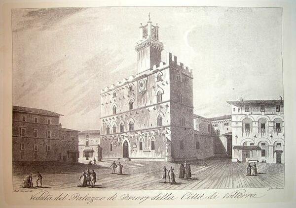 VEDUTA DEL PALAZZO PUBBLICO DI VOLTERRA. Riproduzione tratta da "Viaggio pittorico della Toscana" di Jacopo e Antonio Terreni.