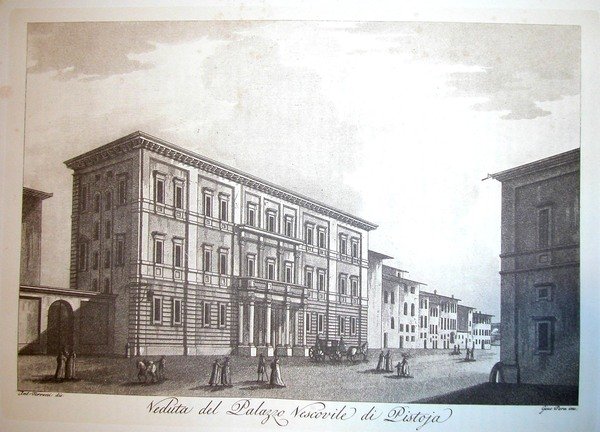 VEDUTA DEL PALAZZO VESCOVILE DI PISTOIA. Riproduzione tratta da "Viaggio pittorico della Toscana" di Jacopo e Antonio Terreni.