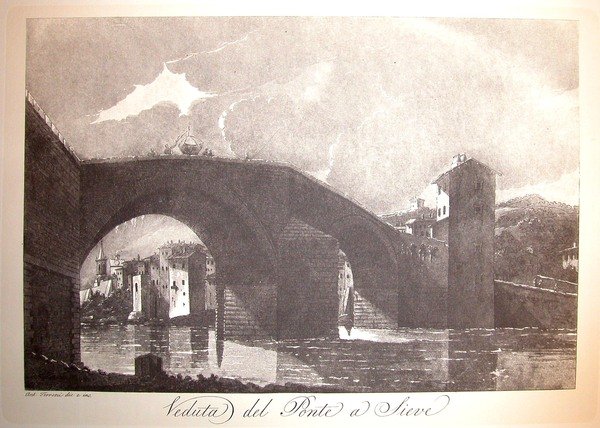 VEDUTA DEL PONTE A SIEVE. Riproduzione tratta da "Viaggio pittorico della Toscana" di Jacopo e Antonio Terreni.