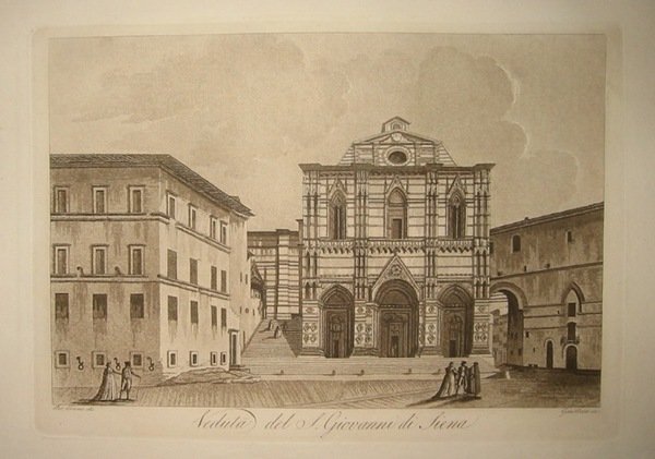 Incisione originale all’acquatinta (cm. 37x26) da un disegno di Antonio Terreni, tratta dal ‘Viaggio Pittorico della Toscana’. Ottimo esemplare a pieni margini.