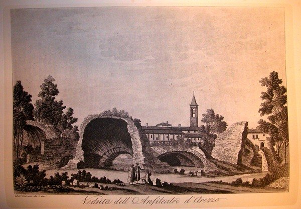 VEDUTA DELL' ANFITEATRO DI AREZZO. Riproduzione tratta da "Viaggio pittorico della Toscana" di Jacopo e Antonio Terreni.