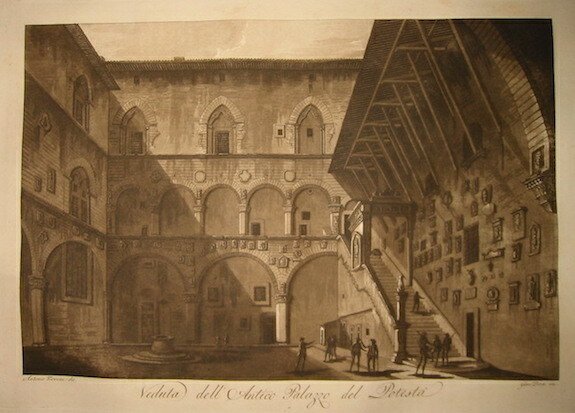 Acquatinta originale (cm. 36,5x26 più ampi margini bianchi) dal ‘Viaggio pittorico della Toscana’ dell’abate Francesco Fontani. Esemplare in ottimo stato di conservazione.