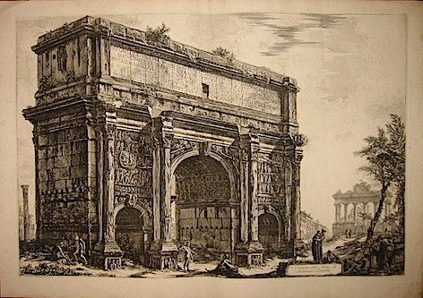 Acquaforte originale (cm. 70,5x47,5 più ampi margini bianchi). Carta vergellata con filigrana ‘Giglio in doppio cerchio sormontato da lettera B’. Lievi, sporadiche fioriture, altrimenti ottimo esemplare in nitida impressione. Il rame, inciso a Roma da Giovan Battista Piranesi, fu stampato in prima edizione a Parigi dal figlio Francesco. Hind n. 99, I/III; Focillon, n. 754.