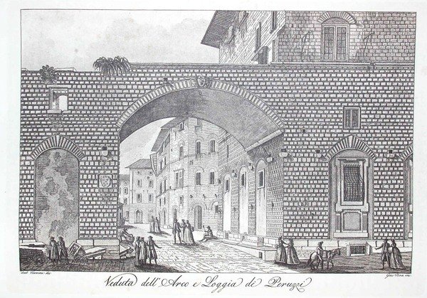 VEDUTA DELL' ARCO E LOGGIA DE' PERUZZI A FIRENZE. Riproduzione tratta da "Viaggio pittorico della Toscana" di Jacopo e Antonio Terreni.
