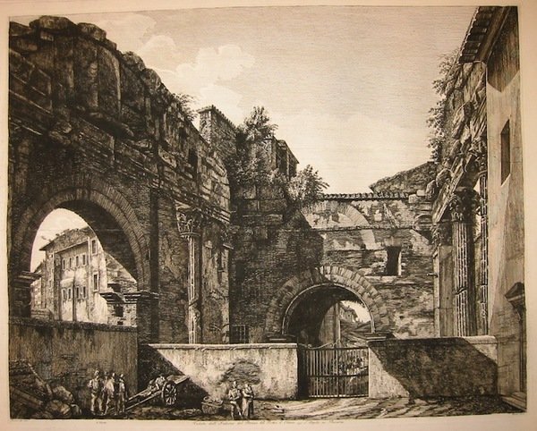 Incisione originale su rame (cm. 55,5x44 più margini) tratta da ‘Le Antichità romane’. Lieve traccia di piegatura nella parte centrale,ma ottimo esemplare