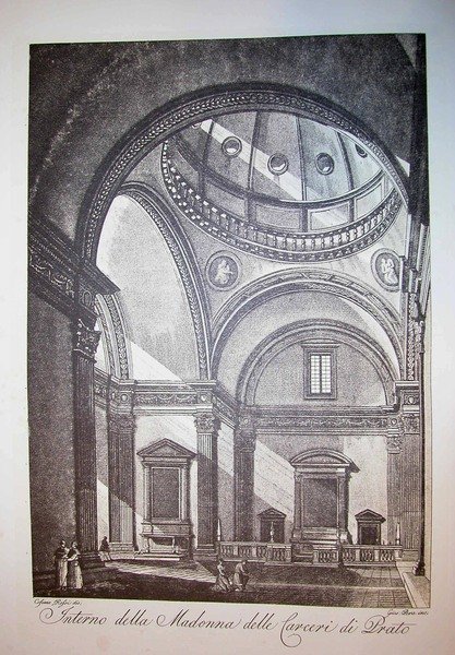 VEDUTA DELL' INTERNO DELLA CHIESA DELLE CARCERI DI PRATO. Riproduzione tratta da "Viaggio pittorico della Toscana" di Jacopo e Antonio Terreni.
