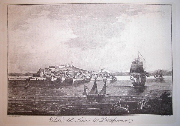 VEDUTA DELL' ISOLA DI PORTOFERRAIO. Riproduzione tratta da "Viaggio pittorico della Toscana" di Jacopo e Antonio Terreni.