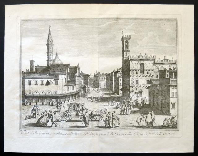 Trattasi di riproduzione del 1950 circa, di ottima qualità artistica e stampata su vecchia carta vergata, con battuta della lastra al recto, cm 39 x 50 (il foglio), in bs. a sn. “Jos. Zocchi del.”; in bs. a ds. “Vincen. Franscehini Firenze” (manca sotto il numero di riferimento della tavola). Le vedute originali sono tratte dall’album “Vedute delle Ville e d’altri luoghi della Toscana”, 1750 circa. Ottima conservazione.