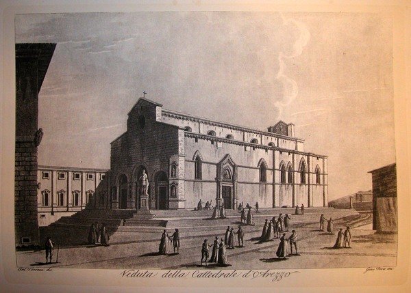VEDUTA DELLA CATTEDRALE DI AREZZO. Riproduzione tratta da "Viaggio pittorico della Toscana" di Jacopo e Antonio Terreni.