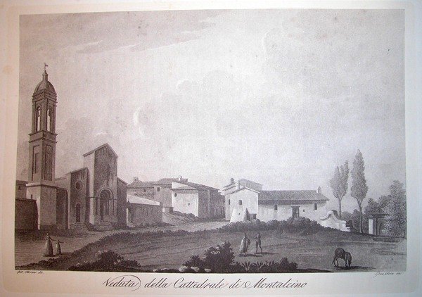 VEDUTA DELLA CATTEDRALE DI MONTALCINO. Riproduzione tratta da "Viaggio pittorico della Toscana" di Jacopo e Antonio Terreni.