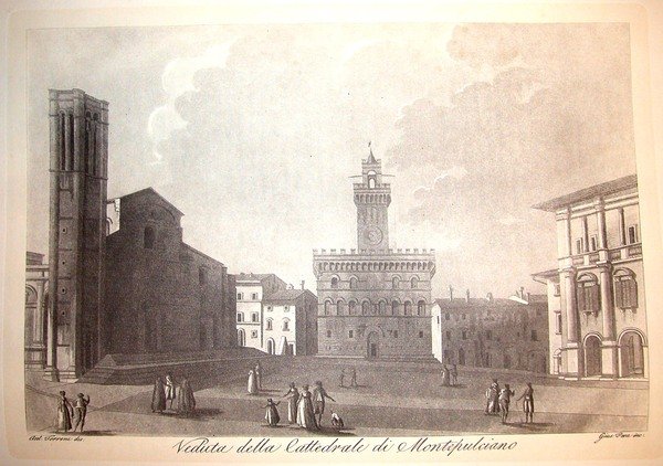 VEDUTA DELLA CATTEDRALE DI MONTEPULCIANO. Riproduzione tratta da "Viaggio pittorico della Toscana" di Jacopo e Antonio Terreni.