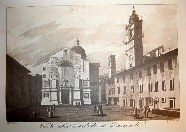 VEDUTA DELLA CATTEDRALE DI PONTREMOLI. Riproduzione tratta da "Viaggio pittorico della Toscana" di Jacopo e Antonio Terreni.