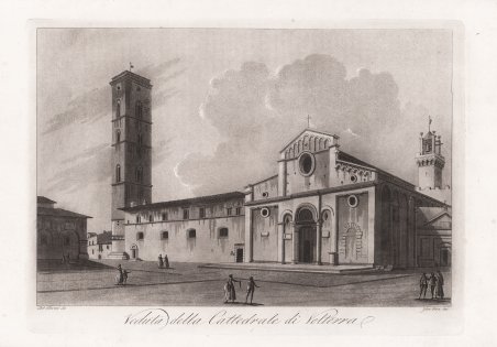 Veduta tratta dalla serie Viaggio pittorico della Toscana di Francesco Fontani fu pubblicato per la prima volta a Firenze, dall’editore Giuseppe Tofani, tra il 1801 ed il 1803. L’opera è considerata uno dei più importanti e suggestivi libri figurati sulla Toscana, sia per la qualità grafica delle incisioni sia per la gran quantità di località ritratte. Nei tre volumi in folio che compongono questa ponderosa pubblicazione sono, infatti, inserite 209 tavole, finemente incise all’acquatinta dai fratelli Antonio e Jacopo Terreni (attivi a Livorno e Firenze tra la fine del diciottesimo e l’inizio del diciannovesimo secolo), da Giovanni Pera ed altri. Nove delle tavole della serie sono stampate a doppia pagina e raffigurano: la carta della regione, una pianta e la veduta delle città principali: Firenze, Siena, Pisa, Livorno. Tutti gli altri esemplari sono stampati a foglio singolo e raffigurano architetture o paesaggi relativi sia alle principali località sia ai centri minori della Toscana. Notevole fu il successo del Viaggio Pittorico della Toscana, anche per il seguito di riproduzioni e di rifacimenti cui fu sottoposto, in Italia e all’estero, gran parte del suo corredo grafico. Moltissimi altri libri furono, infatti, illustrati in seguito con incisioni derivanti dalla grafica dei fratelli Terreni, mentre una seconda edizione dell’opera venne alla luce, in formato ridotto, nel 1817/18. ' Incisione in rame all’acquatinta, stampata ad inchiostro bruno su carta vergata coeva, ampli margini, lievissime bruniture, nel complesso in ottimo stato di conservazione. View taken from Viaggio pittorico della Toscana by Francesco Fontani was published for the first time in Florence by the publisher Giuseppe Tofani, between 1801 and 1803. The work is considered one of the most important and suggestive pictorial books on Tuscany, both for the graphic quality of the engravings and for the large number of places portrayed. In the three folio volumes there are 209 plates, finely etched in aquatint by the brothers Antonio and Jacopo Terreni (active in Livorno and Florence between the end of the eighteenth and the beginning of the nineteenth century), by Giovanni Pera and others. Nine of the plates in the series are printed double-page and depict the map of the region, a plan and a view of the main cities: Florence, Siena, Pisa, Livorno. All other plates are printed on single sheet and depict architecture or landscapes related to both major locations and minor centers of Tuscany. The success of Viaggio Pittorico della Toscana was remarkable, also because of the many reproductions and remakes to which most of its graphic material was subjected, in Italy and abroad. Many other books were, in fact, later illustrated with engravings deriving from the graphics of the Terreni brothers, while a second edition of the work came to light, in a reduced format, in 1817/18. ' Aquatint, printed in brown ink on coeval laid paper, wide margins, very slight browning, overall in very good condition. Cfr. Cremonini pp.145/148, 117.