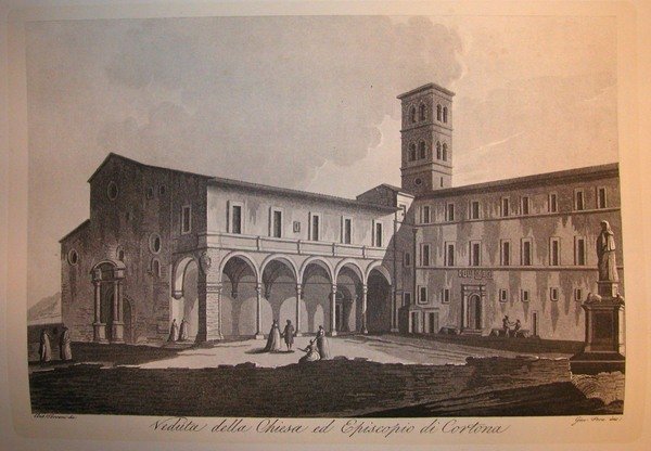 VEDUTA DELLA CHIESA ED EPISCOPIO DI CORTONA. Riproduzione tratta da "Viaggio pittorico della Toscana" di Jacopo e Antonio Terreni.