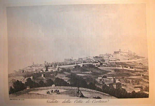 VEDUTA DELLA CITTA' DI CORTONA. Riproduzione tratta da "Viaggio pittorico della Toscana" di Jacopo e Antonio Terreni.