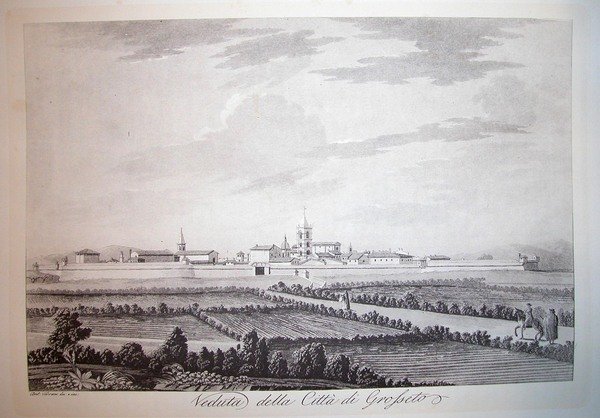 VEDUTA DELLA CITTA' DI GROSSETO. Riproduzione tratta da "Viaggio pittorico della Toscana" di Jacopo e Antonio Terreni.