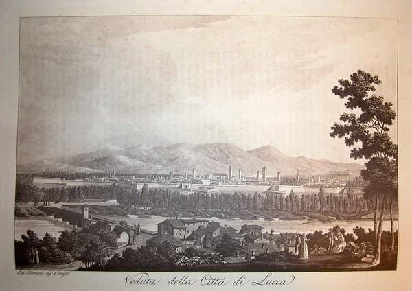 VEDUTA DELLA CITTA' DI LUCCA. Riproduzione tratta da "Viaggio pittorico della Toscana" di Jacopo e Antonio Terreni.