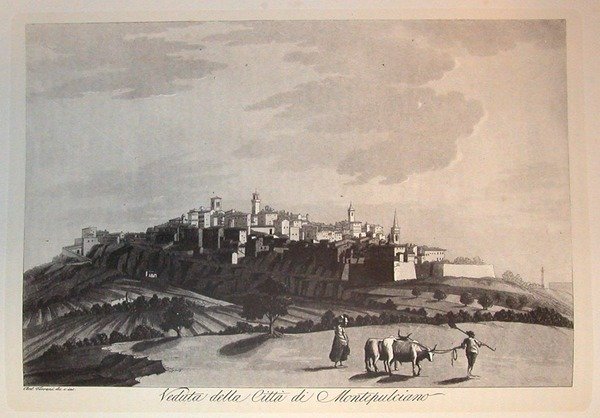 VEDUTA DELLA CITTA' DI MONTEPULCIANO. Riproduzione tratta da "Viaggio pittorico della Toscana" di Jacopo e Antonio Terreni.