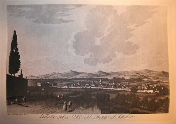 VEDUTA DELLA CITTA' DI SANSEPOLCRO. Riproduzione tratta da "Viaggio pittorico della Toscana" di Jacopo e Antonio Terreni.