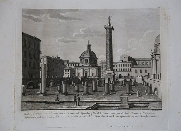 Veduta della Colonna eretta dal Senato Romano in onore dell'Imperatore Traiano, nella quale sono rappresentate ambedue le su