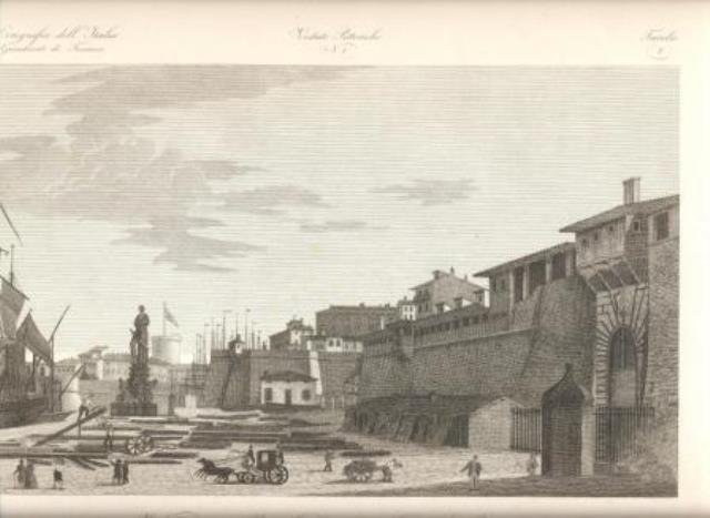 Firenze, 1842 - 1844. Incisione in rame tratta dall’atlante “Corografia Fisica, Storica e Statistica dell’Italia e delle sue Isole”, relativa al “Granducato di Toscana” (al margine superiore: Vedute Pittoriche N. 1, Tavola 8), cm 18 x 28,5 (la parte figurata) più ampi margini. Piacevole veduta animata, ben impressa, buono stato di conservazione.