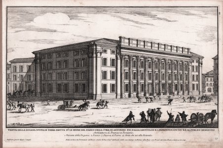 Veduta della Dogana Nuova di Terra eretta sù le ruine del fianco della Curia di Antonino Pio.