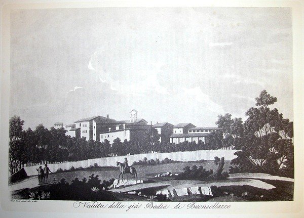 VEDUTA DELLA GIA' BADIA DI BUONSOLLAZZO. Riproduzione tratta da "Viaggio pittorico della Toscana" di Jacopo e Antonio Terreni.