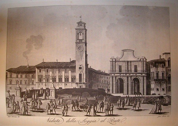 VEDUTA DELLA LOGGIA AL PONTE A PISA. Riproduzione tratta da "Viaggio pittorico della Toscana" di Jacopo e Antonio Terreni.