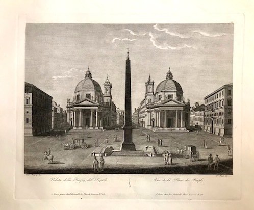Incisione originale su rame (cm. 35x28,5 più ampi margini bianchi) edita da Giacomo Antonelli. Ottimo esemplare.