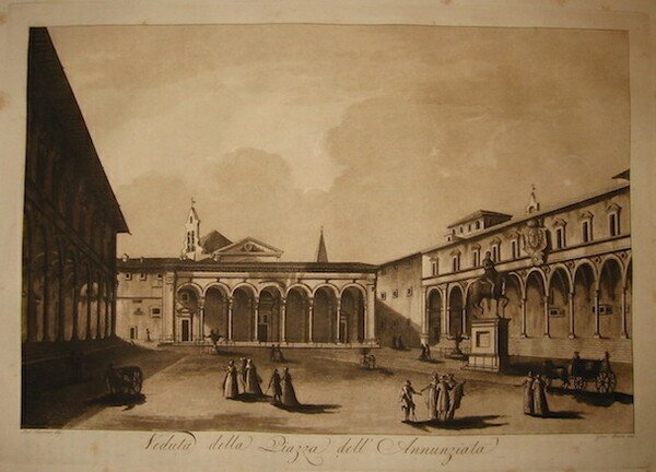 Acquatinta originale (cm. 37x26 più ampi margini bianchi) dal ‘Viaggio pittorico della Toscana’ dell’abate Francesco Fontani. Sporadiche fioriture marginali altrimenti esemplare in ottimo stato di conservazione.