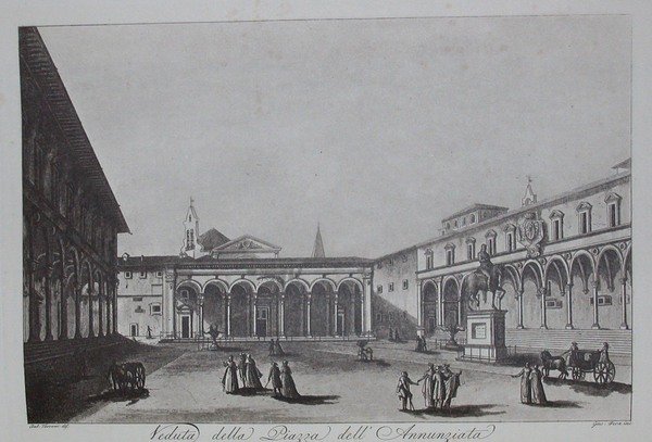 VEDUTA DELLA PIAZZA DELLA ANNUNZIATA A FIRENZE. Riproduzione tratta da "Viaggio pittorico della Toscana" di Jacopo e Antonio Terreni.