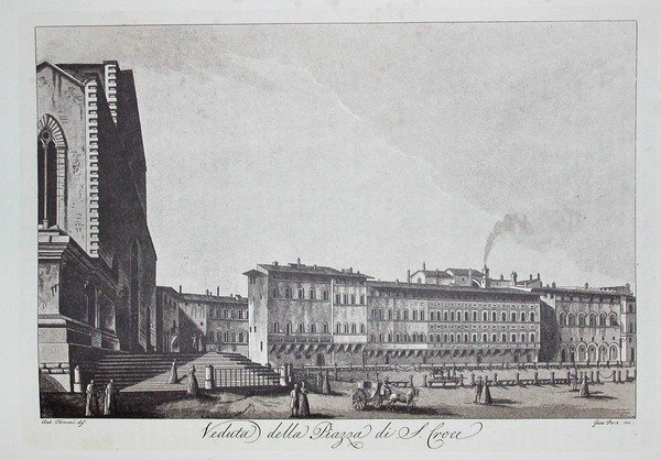 VEDUTA DELLA PIAZZA DI S.CROCE A FIRENZE. Riproduzione tratta da "Viaggio pittorico della Toscana" di Jacopo e Antonio Terreni.