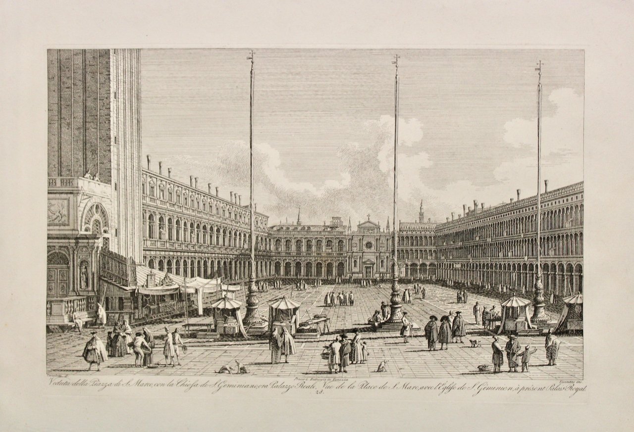 Incisione in rame, mm 250x420 c. (l’inciso) Tratta da “Urbis Venetiarum prospectus celebriores ex Antonii Canal tabulis XXXVIII…” la cui prima edizione completa fu pubblicata nel 1742, poi ristampata più volte nel corso del secolo da Furlanetto e Viero oltre che da Battaggia nel XIX secolo. Stato II/IV, prima edizione pubblicata da Giuseppe Battaggia. Ottimo esemplare. Succi, La Serenissima nello specchio di rame, vol I, p. 216.