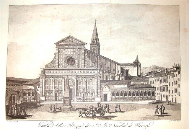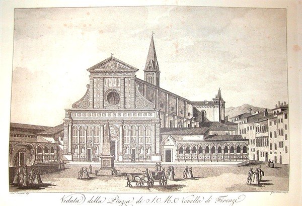 VEDUTA DELLA PIAZZA DI S.MARIA NOVELLA DI FIRENZE. Riproduzione tratta da "Viaggio pittorico della Toscana" di Jacopo e Antonio Terreni.