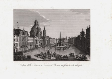 Veduta della Piazza Navona di Roma artificialmente allagata