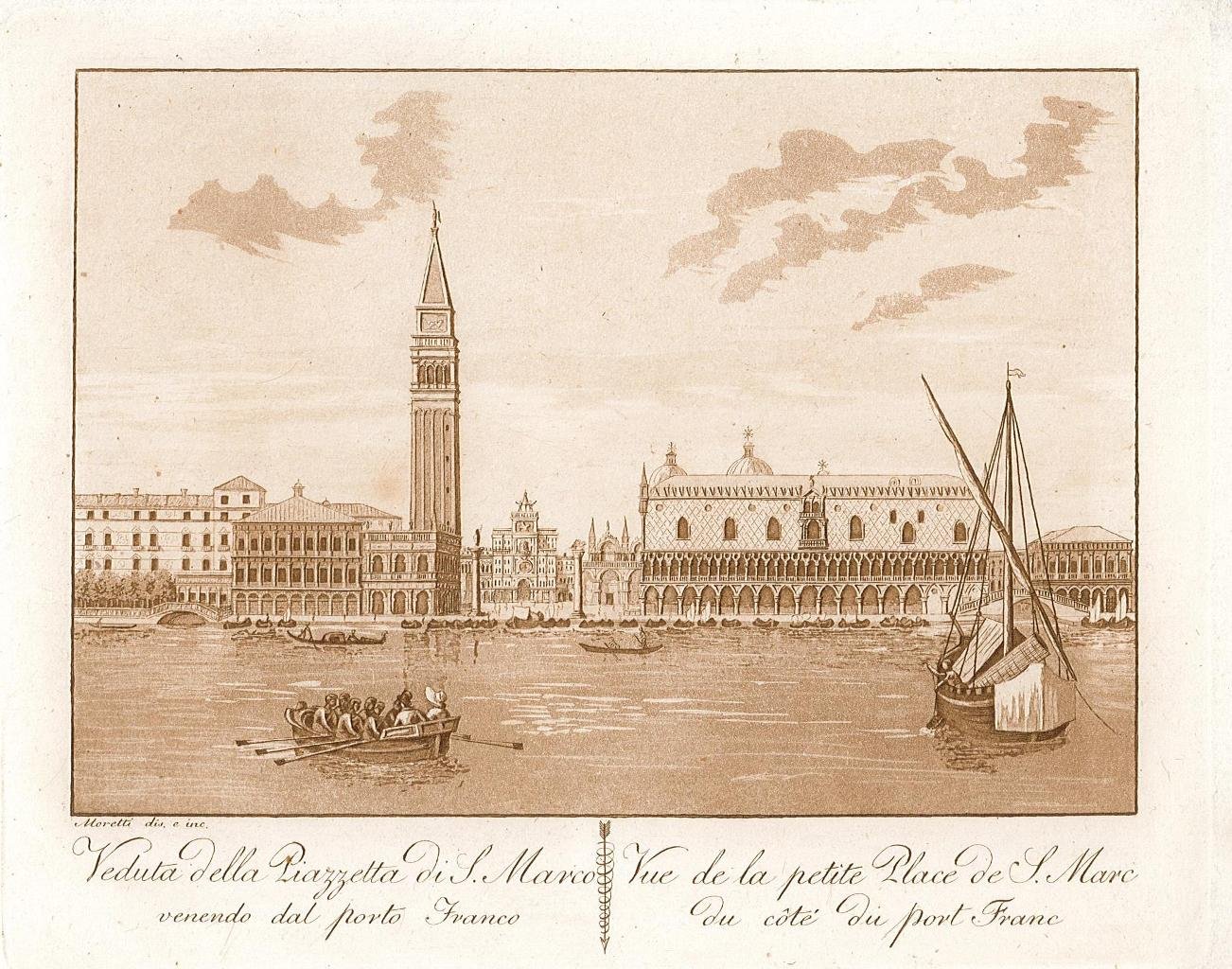 Veduta della Piazzetta di S. Marco venendo dal porto Franco - Il titolo si ripete in francese sulla destra