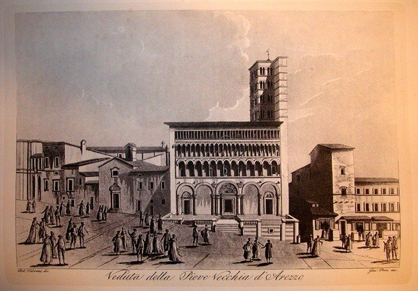 VEDUTA DELLA PIEVE VECCHIA DI AREZZO. Riproduzione tratta da "Viaggio pittorico della Toscana" di Jacopo e Antonio Terreni.