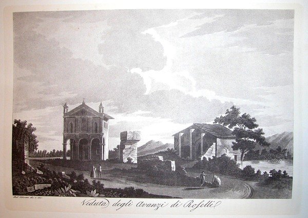 VEDUTA DELLE ROVINE DI ROSELLE. Riproduzione tratta da "Viaggio pittorico della Toscana" di Jacopo e Antonio Terreni.