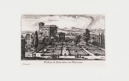 Acquaforte, 1745 circa, firmata in lastra. Magnifica prova, con pieni margini, in perfetto stato di conservazione.Opera tratta dalle “Varie Vedute di Roma Antica, e Moderna. Disegnate e Intagliate da Celebri Autori” stampata in Roma “a spese di Fausto Amidei”, 1748.La raccolta, in 4° oblungo, viene pubblicata da Fausto Amidei in varie edizioni dal 1745 al 1750, e da Giovanni Bouchard nel 1752. Conteneva frontespizio inciso e 93/96 tavole, delle quali 47 firmate Piranesi in lastra ed altre da Giraud, Carloni, Nicole, Mogalli, Bellicard, Le Geay, ed Anesi.Opere giovanili del Piranesi, appena giunto a Roma dove fu allievo della bottega di Giuseppe Vasi. Vasi lavora alle sue vedute, che presentate come raccolta, prenderanno dal 1747 il nome delle 'Magnificenze di Roma'; agli inizi dell’opera Piranesi lo affianca, ma, almeno dal 1744, produce sue proprie vedutine, che nel 1745 formano il nucleo più importante delle 'Varie Vedute di Roma antica e moderna disegnate e intagliate da celebri autori' per il libraio ed editore Amidei. Etching, around 1745, signed in plate. A very good impression with full margins, in perfect condition.Taken from the “Varie Vedute di Roma Antica, e Moderna. Disegnate e Intagliate da Celebri Autori” printe in Rome by Fausto Amidei, 1748.The collection, in 4th oblong, is published by Fausto Amidei in various editions from 1745 to 1750, and by Giovanni Bouchard in 1752. It contained an engraved frontispiece and 93/96 plates, of which 47 signed by Piranesi and others by Giraud, Carloni, Nicole, Mogalli, Bellicard, Le Geay, and Anesi.Early works by Piranesi, who had just arrived in Rome where he was a student of the workshop of Giuseppe Vasi. Vasi’s works will take the name of the 'Magnificenze di Roma'; from 1747; at the beginning of the work Piranesi joined him, but, at least since 1744, he produced his own views, which in 1745 formed the most important nucleus of the 'Varie Vedute di Roma antica e moderna disegnate e intagliate da celebri autori' for the bookseller and editor Amidei. Cfr. Wilton-Ely 84; Focillon 119