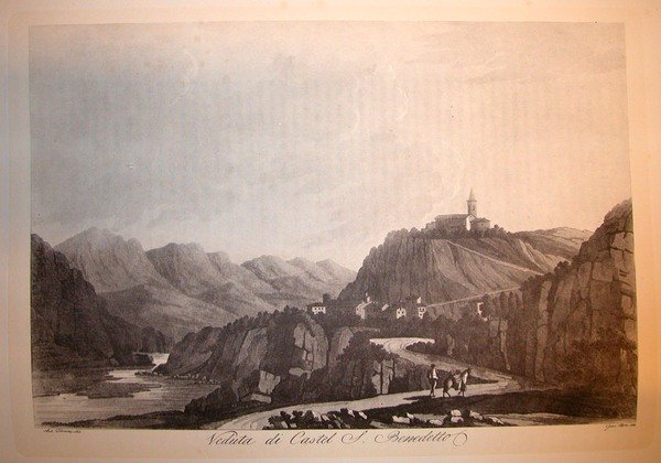 VEDUTA DI CASTEL S.BENEDETTO. Riproduzione tratta da "Viaggio pittorico della Toscana" di Jacopo e Antonio Terreni.