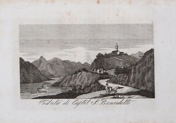 Veduta tratta dal celebre "Il viaggio pittorico della Toscana", stampato a Firenze, per Giovanni Marenigh, 1817.Celebre opera che costituisce uno straordinario affresco iconografico dell'intera Toscana. L'abate Francesco Fontani (Firenze, 1748-1818), dotto erudito, dopo gli studi compiuti nel seminario del Collegio Eugeniano si trasferì a Roma ove insegnò eloquenza nel Collegio Bandinelli. Si dedicò agli studi artistici e archeologici e, rientrato a Firenze, divenne Bibliotecario alla Riccardiana, occupandosi anche della Accademia della Crusca. Fu parroco nella chiesa di Santa Lucia dei Magnoli. "Il viaggio pittorico della Toscana" costuisce la sua opera più rinomata.Riproducendo fedelmente le tavole incise dai fratelli Terreni durante il loro viaggio del 1801,fu pubblicata la prima volta tra il 1801 e il 1803 per i tipi del Tofani a Firenze e in seguito, in questa versione ridotta nel formato, da Giovanni Marenigh nel 1817-1818 e nel 1822. Veduta tratta dal celebre "Il viaggio pittorico della Toscana", stampato a Firenze, per Giovanni Marenigh, 1817.Celebre opera che costituisce uno straordinario affresco iconografico dell'intera Toscana. L'abate Francesco Fontani (Firenze, 1748-1818), dotto erudito, dopo gli studi compiuti nel seminario del Collegio Eugeniano si trasferì a Roma ove insegnò eloquenza nel Collegio Bandinelli. Si dedicò agli studi artistici e archeologici e, rientrato a Firenze, divenne Bibliotecario alla Riccardiana, occupandosi anche della Accademia della Crusca. Fu parroco nella chiesa di Santa Lucia dei Magnoli. "Il viaggio pittorico della Toscana" costuisce la sua opera più rinomata.Riproducendo fedelmente le tavole incise dai fratelli Terreni durante il loro viaggio del 1801,fu pubblicata la prima volta tra il 1801 e il 1803 per i tipi del Tofani a Firenze e in seguito, in questa versione ridotta nel formato, da Giovanni Marenigh nel 1817-1818 e nel 1822. Cfr. Fossati Bellani, II, 3377; Lozzi, 5462, Bigazzi, 1341 e 1342, cita le edizioni 1801-1803 e 1817.