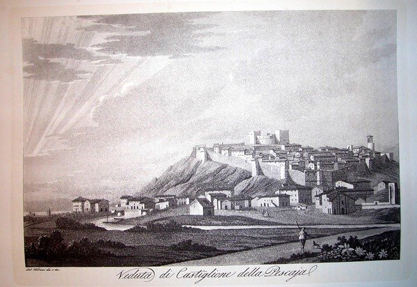 VEDUTA DI CASTIGLIONE DELLA PESCAJA. Riproduzione tratta da "Viaggio pittorico della Toscana" di Jacopo e Antonio Terreni.