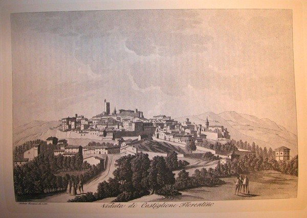 VEDUTA DI CASTIGLIONE FIORENTINO. Riproduzione tratta da "Viaggio pittorico della Toscana" di Jacopo e Antonio Terreni.