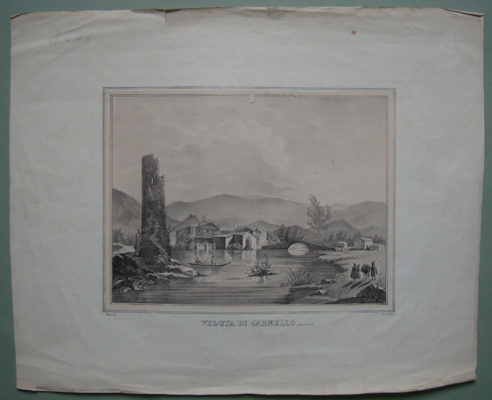 RUO. Veduta di Cornello presso Sora. 1850 ca. Litografia sur chine di Zezon. Cm.23x30.